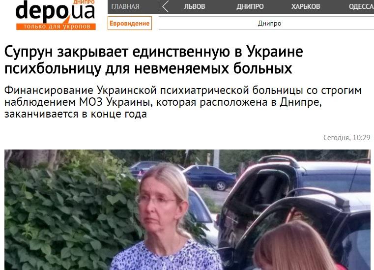 Напомним, что весной 2017 года Супрун заявила о закрытии Украинской психиатрической больницы со строгим наблюдением МОЗ Украины, которая расположена в Днипре и является единственным таким заведением в стране. В этой больнице во время проверки нашли истории болезней, воспоминания и письма известных диссидентов времен СССР.