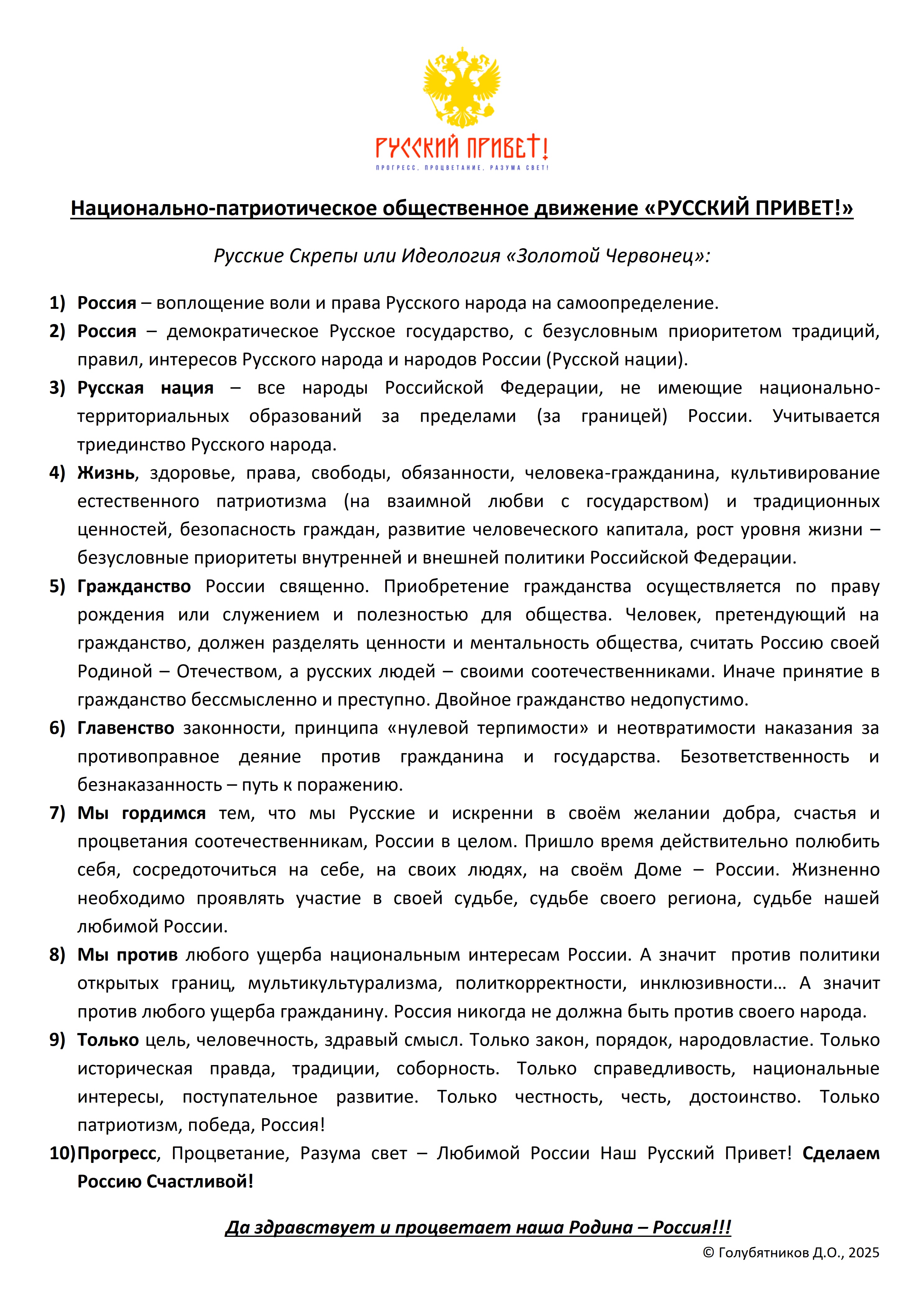 #РусскийПривет #СделаемРоссиюСчастливой #НациональныйИнтерес #РусскиеСкрепы #ЗолотойЧервонец #ДомРоссия #КрасивоБудет #РусскоеЗнамя #АбсолютнаяЦель #ЖивиКакНужно