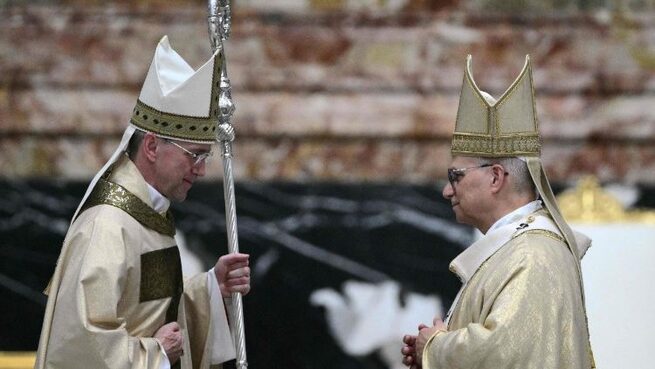 Оплошность Папского церемониймейстера, Монс Диего Равелли. Вчера днем Святой отец Лев XIV посвятил епископа монсеньора Мирослава Станислава Вачовского, нового Апостольского нунция в Ираке. Во время хиротонии папа надел епископское кольцо на безымянный палец правой руки, и монсеньор Равелли сразу же принес ему Митру. Понтифик в этот момент спросил: "А ка...