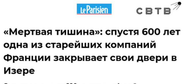 Один из старейших сталелитейных заводов Франции закрылся из-за невозможности справиться с ростом цен на электроэнергиюПредприятие Bonpertuis в коммуне Априё проработало почти шесть веков. На прошлой неделе завершилась юридическая ликвидация управляющей им компании.Как сообщает Le Parisien, завод пережил все исторические потрясения, все революции, войны....
