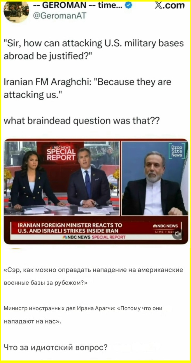 На фоне бессвязных вербальных интервенций Трампа, ищущего красивый предлог, чтобы свалить с Ближнего Востока (что предсказуемо), Иран ведёт себя крайне достойно – демонстрирует решимост...