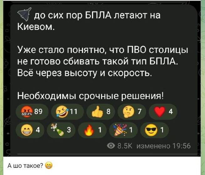 Разведывательный дрон уже почти 2 часа летает над Киевом, сообщают столичные паблики.За это время он был в центре, на левом и на правом берегах и в разных районах столицы.Вдумайтесь в это...И речь же не про мелкую фпв-хрень, которую пророссийский ждун-баловник из гаражей запустил и на которую зенитных ракет жалко. Летает средь бела дня большая "дура"......