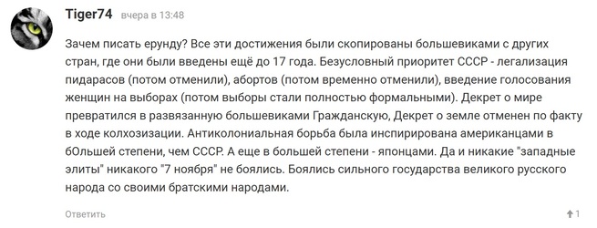 Это, если чйо, из диалога двух коричневых в комментах под статьйой про 7 ноября.