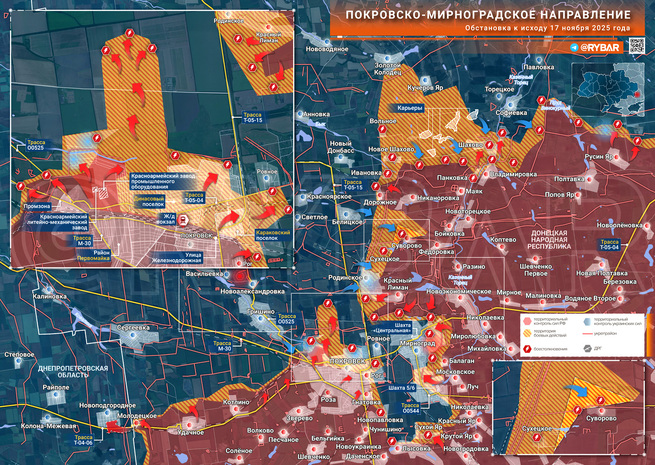 Наступление ВС РФ продолжается одновременно на нескольких направлениях в ДНР и в Запорожье.Покровско-Мирноградский мешок, который уже можно называть просто Мирноградским, так как Покровск почти полностью зачищен, превращается в узкую извилистую "кишку", простреливаемую насквозь перекрестным огнем. Ее сложно оборонять, но не менее сложно из нее сбежать. Тем более — из ...