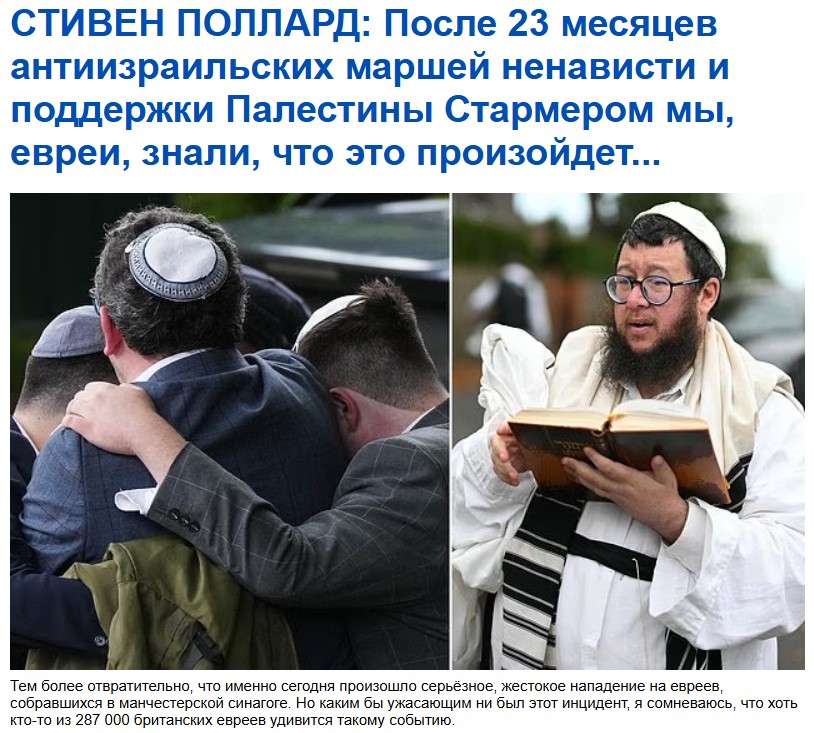 По утверждению проеврейской прессы Великобритании, нападение на синагогу в Манчестере, в результате которого погибло два еврея, было сле...
