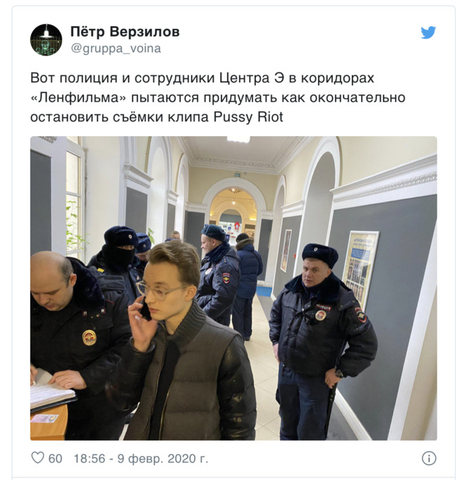 - Полиция сорвала съемки клипа Pussy Riot на «Ленфильме». Полиция сорвала съемки клипа группы Pussy Riot на песню «Бесит», которые проходили на киностудии «Ленфильм» в Петербурге. Об этом сообщила «Медиазоне» участница группы Надежда Толоконникова. «У нас тут менты и "эшники" ; они зашли сначала, чтобы взять объяснение о том, что "пропаганды гомосексуализма и экстремизма" у нас тут не будет, потом ушли к начальству "Ленфильма", и через полчаса во всем здании вырубили свет», — рассказала она.