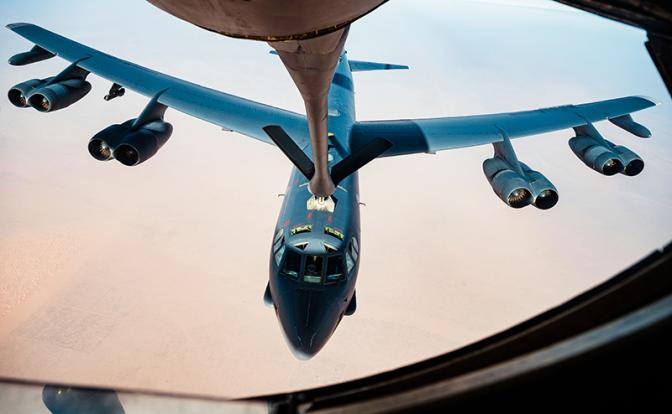 Они, по всей видимости, вылетели с авиационных баз в Великобритании. С недавних пор Пентагон возобновил присутствие своих «стратегов» на территории Мутного Альбиона. Эти машины предполагается использовать в случае обострения ситуации на Ближнем Востоке, для ударов по Ирану и сдерживания России.