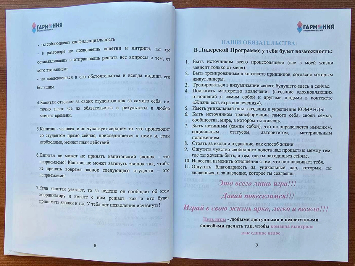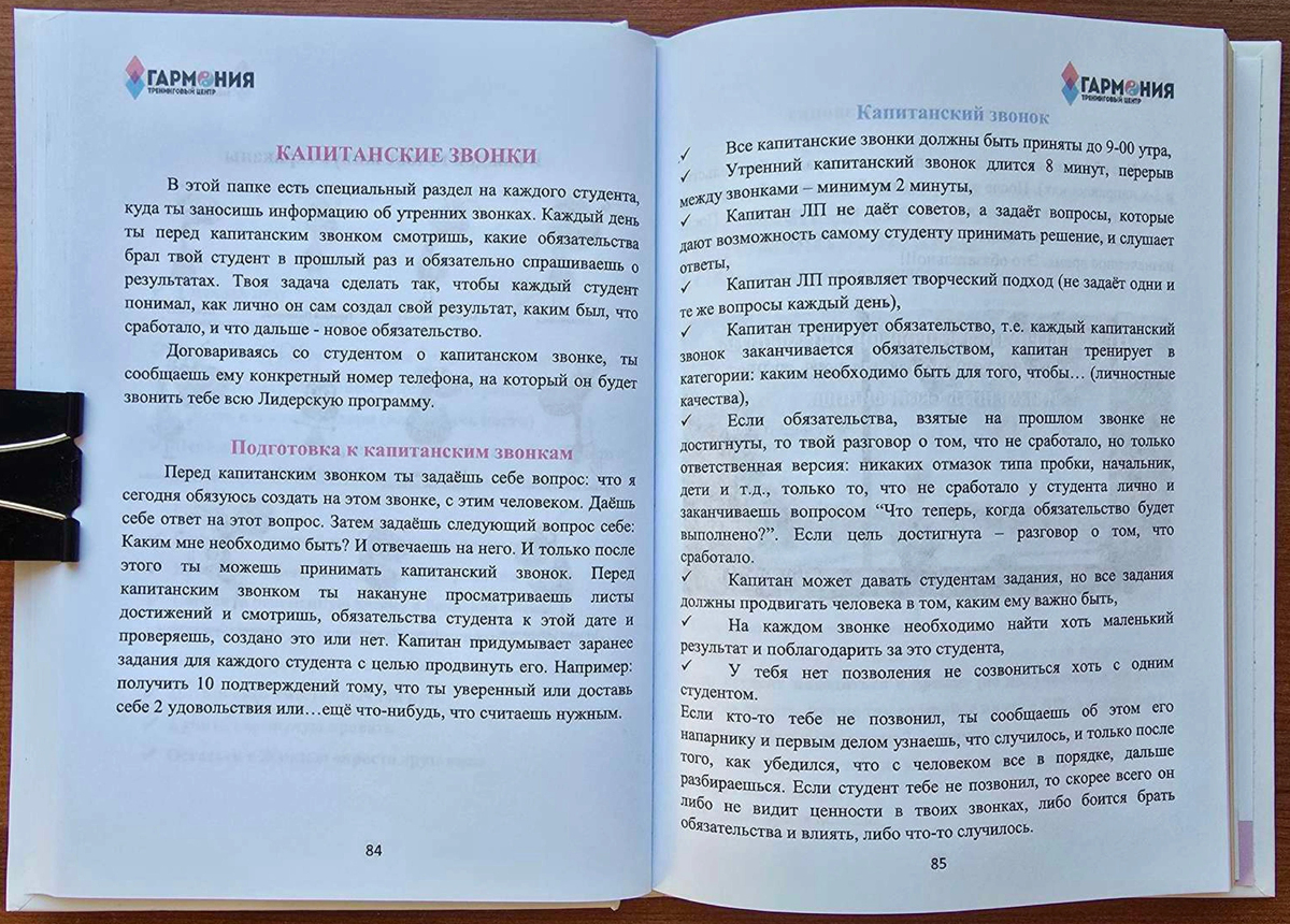 «Книга капитана» — это методичка для участников так называемой «Лидерской программы» (ЛП). Ее выдавали тем, кого назначали «капитанами» — старшими в группах новичков. Это не сборник вдохновляющих цитат, а пошаговый технический мануал. В нем расписаны процедуры управления людьми по минутам, вербовки новых клиентов, проведения «работы над ошибками».