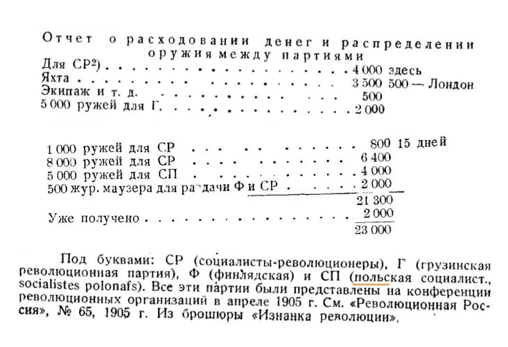 Так же в этой книге опубликовал интересный документ - Отчет о расходовании денег и распределении оружия между партиями: