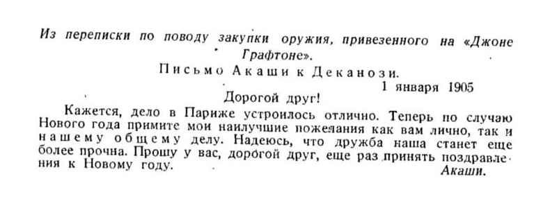 Ряд писем из переписки между Акаси и Деканози перехватил Департамент полиции Российской империи (https://t.me/righthistory/7091?single), после чего были получены железные доказательства прямого сотрудничества (и финансирования) левых террористических партий и сепаратистов с японцами