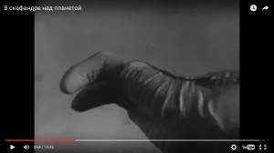 Во-первых, у него самого рыльце в пушку, летать в кроссовках в открытом космосе не каждому дано, разве что в пародии по Пелевину "Архипыч, шнурки покрепче затяни - вакуум суровый, шуток не понимает". Но Леонов типа летал. В шибко "документальном" кино "Военфильма" на 3:51-3:57 наблюдаем кроссовки/кеды. Так и напрашивается название фильма "В кроссовках/кедах над планетой", скриншот на 3:54 и увеличенный фрагмент:
