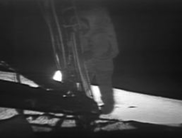 Хорошо, смотрим на первые секунды пребывания первого космонавта "на Луне" (когда прозвучал тот самый знаменитый слоган Армстронга "мой маленький шаг - большой шаг всего человечества").