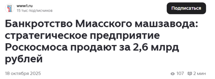 Первый пример - Миасский машиностроительный завод, отнесенный к стратегическим предприятиям и работавший на Роскосмос, в том числе и по военным заказам - производил ракетные комплексы.