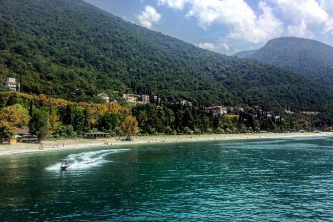 Первое, что бросается в глаза, — это несоответствие идеальным картинкам. Море здесь далеко от лазурного оттенка, оно вполне обычное для Черного моря, ничем не лучше, чем в Анапе или Джубге. Уникальное место, которое стоит посетить за пределами пляжа, — озеро Рица. Если вы не взяли экскурсию, считайте, что ничего и не увидели. Остальные живописные уголки либо трудно доступны, либо выглядят так, словно их не трогали с распада СССР.
