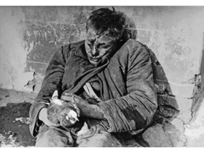 Или вот вам два примера. Офицеру вермахта мешал спать младенец, он взял его за ногу и разбил его голову об угол печки. Ваши летчики на станции Лычково разбомбили эшелон, на котором пытались вывезти детей в тыл, и потом ваши асы гонялись за перепуганными малышами, расстреливая их в голом поле. Было убито две тысячи детей.