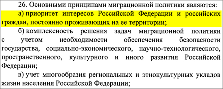 Зададимся другим вопросом: а почему депутат противоречит позиции собственной партии, правящей в стране, и игнорирует установки, которые совсем недавно дал президент? В обновлённой Концепции миграционной политики на 2026-2030 гг. чётко сказано о приоритете интересов коренного населения над приезжими.