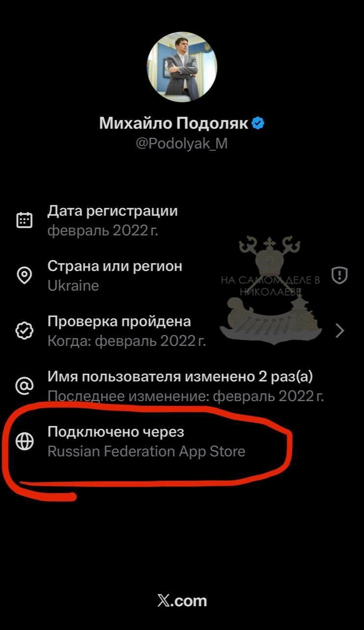 Оказалось, что говорящая голова ОП Мишаня Подоляк и глава ГУР Буданов пользуются российским App Store.