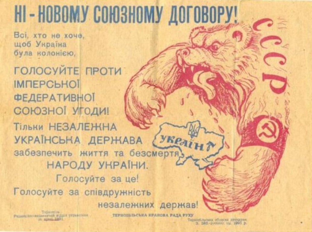 Например, тернопольское отделение «Народного руха» убеждало «всех, кто не хочет, чтобы Украина была колонией», голосовать против «имперского договора» за «жизнь и бессмертие народа Украины».