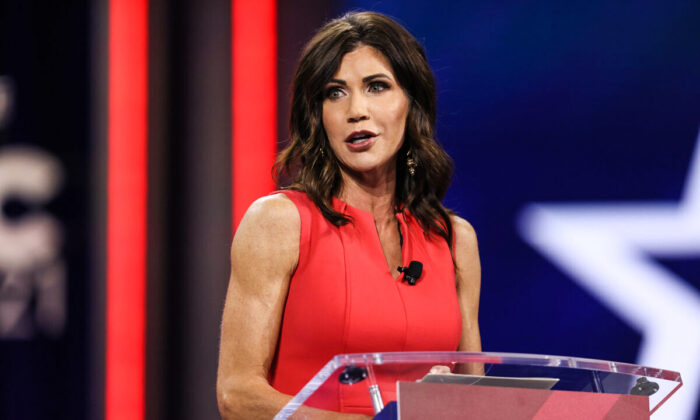 Губернатор Южной Дакоты Кристи Ноэм выступает на конференции Консервативного политического действия (Conservative Political Action) в отеле Hyatt Regency в г. Орландо, штат Флорида, 27 февраля, 2021. (Джо Рэдль (Joe Raedle)/Getty Images)