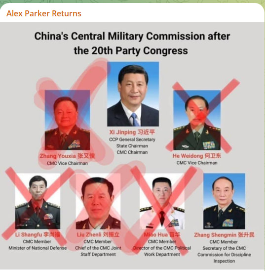 Не исключаю, что Компартия проведет дополнительный пятый пленум ЦК в рамках 20-ого съезда до китайского Нового года — где может утвердить новый состав Центрального военного комитета: чтобы вывести Чжан Юся и Лю Чжэньли из состава ЦВК и ЦК Компартии, и возможно, утвердить новый состав ЦВК — интрига большая: мы не знаем точно потенциальных кандидатов и их родов войск на ключевые должности в армии: