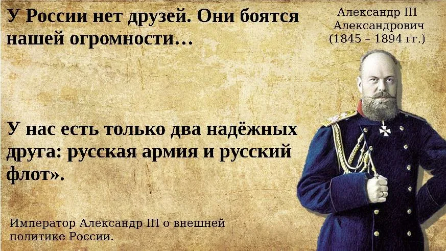 И, если принцип силы, вместо международного права возобладает, то Мир уже не будет прежним, и вспомнится принцип Александра III, сказавшего, что "...У России нет друзей, кроме Армии и Флота..."