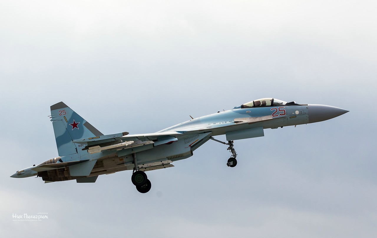 Истребитель Су-35С (бортовой номер "25 красный") из состава 22-го истребительного авиационного полка 303-й гвардейской смешанной авиационной дивизии 11-й армии ВВС и ПВО Восточного военного округа в ходе боевой подготовки на аэродроме 23-го истребительного авиационного полка той же дивизии на аэродроме Центральная Угловая (Приморский край). Сентябрь 2015 года (с) Ник Пилигрим / warlock-fe.livejournal.com