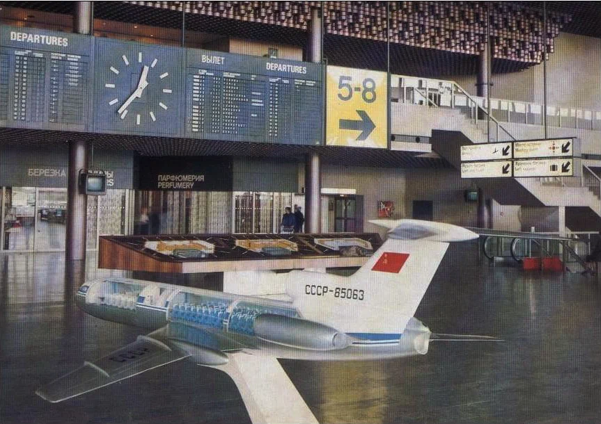 Элемент декора зала – новейший тогда самолет Ил-86.