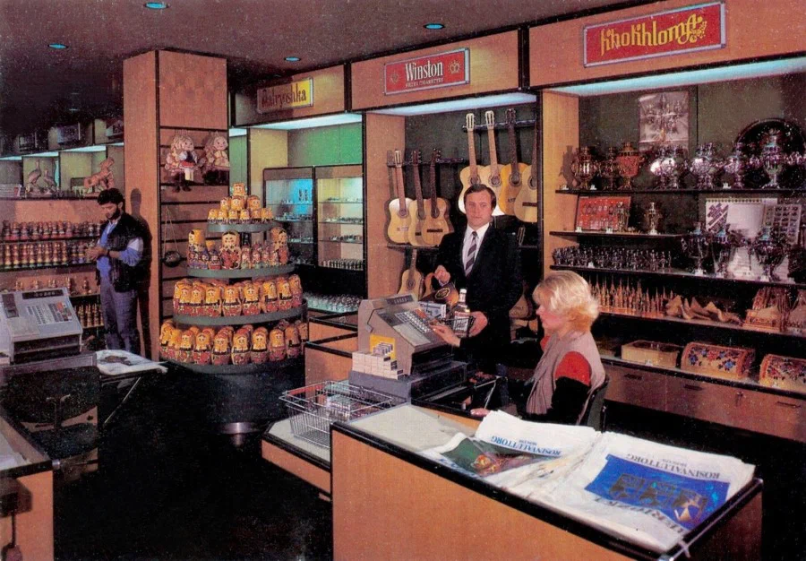 «Дьютиков» в те годы в аэропортах Советского Союза не было. Единственная сеть магазинов в СССР, торговавшая за инвалюту, называлась «Березка». Предназначалась, в основном, для иностранцев. И товары предлагались соответствующие: матрешки, балалайки, самовары, Хохлома и прочие сувениры. Хотя и советские граждане – обладатели долларов, дойче марок и франков, тоже заглядывали в «Березки» за импортными сигаретами, коньяком и вискариком.