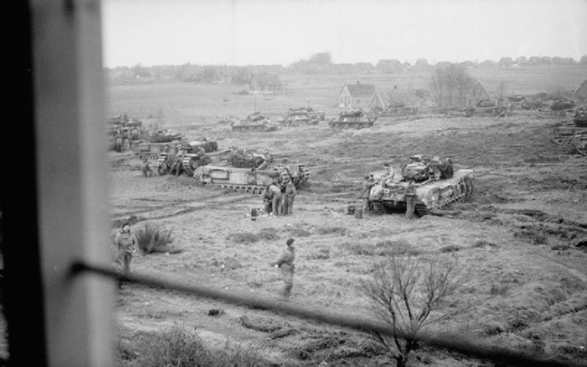 Танки «Черчилль» 34-й танковой бригады в Рейхсвальде во время операции «Веритебл», 8 февраля 1945 г.