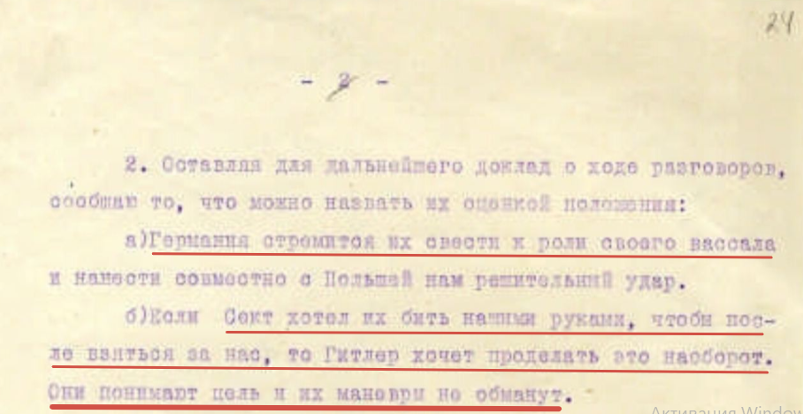 Если Сект хотел их бить нашими руками, чтобы потом взяться за нас, то Гитлер хочет проделать это наоборот.