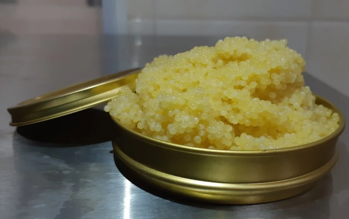 Золотая икра самая дорогая икра в мире. Оказывается кроме черной и красной икры есть и золотая икра (правое фото), на западе ее называют golden caviar, еще называют бриллиантовой икрой, она считается деликатесной и редкой. Мечет ее только рыба белуга-альбинос(окрас белуги должен быть абсолютно белым) и чем старше рыба тем светлее икра и нежнее на вкус. Белуга-альбинос живет до ста лет и вырастает весом до 1 тонны. Цвет икры изумительный, золотисто-янтарный. По объему витаминов и минералов золотая икра аналогична осетровой и белужьей, только вкус у каждого вида икры отличается, золотая икра имеет нежный вкус миндаля, каждая икринка, как будто светится изнутри.