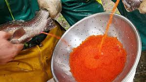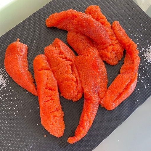 Икра форели - вид красной икры, который ценится за свой уникальный вкус и текстуру. Икра форели известна своими мелкими твердыми икринками, и ее часто используют в качестве начинки для канапе и закусок. Мелкое зерно 2-3 мм. Цвет розовый. Сухая, не жирная, вкус слабый, не насыщенный. Не естественно рассыпчатая. Икра форели добывается в основном на рыбных фермах.