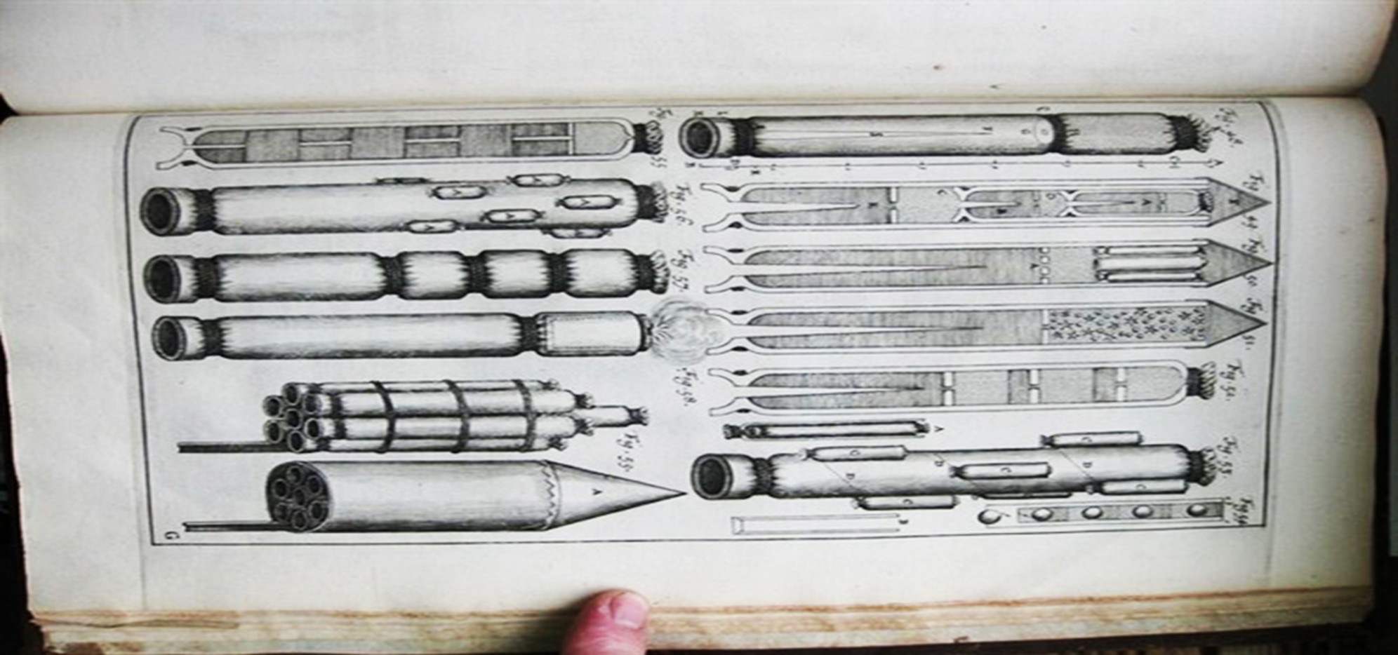 Устройство многоступенчатой ракеты. в книге Казимира Семеновича 1650 года издания, в самом начале раздела о ракетах (стр. 92):«Среди всех искусств огня, в первую очередь солдаты славят Ракеты, начиная с Огнеметания Греков (хотя оно и не совсем походит на наши Ракеты: от огнемётной стрелы воспламенялась мишень; стрела не горела внутри), Итальянские Ракеты, а также Рaгги, Галльские фузеи, Германские Steigenle Kasten , также Рагетты и Дракеты, о которых часто рассказывают. Эта конструкция очень древняя (отработанная. – авт.), но для всякого огнеметания следует сказать: всё же это требует тяжёлого труда, аккуратности в изготовлении изобретательности и усидчивости…»