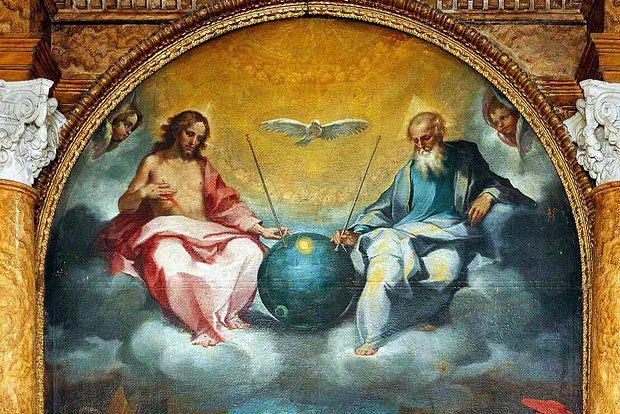 Любители искусства обнаружили советский спутник на картине XVI века с Иисусом, космический аппарат на алтарной картине кисти итальянского художника Вентуры Салимбени «Прославление таинства Евхаристии» 1595 года. Сейчас ее можно увидеть в церкви Святого Лаврентия в итальянском городе Монтальчино недалеко от Флоренции. В верхней части картины XVI века изображена Святая Троица: Отец, Сын и Святой Дух в виде голубя. По центру между ними стоит темно-синий, блестящий в свете солнца шар, из которого с двух сторон торчат два длинных стержня, напоминающие антенны. За один из них держится Иисус, а за другой Бог-Отец. Внешне сфера якобы очень напоминает советский «Спутник-1», который стал первым искусственным спутником Земли.