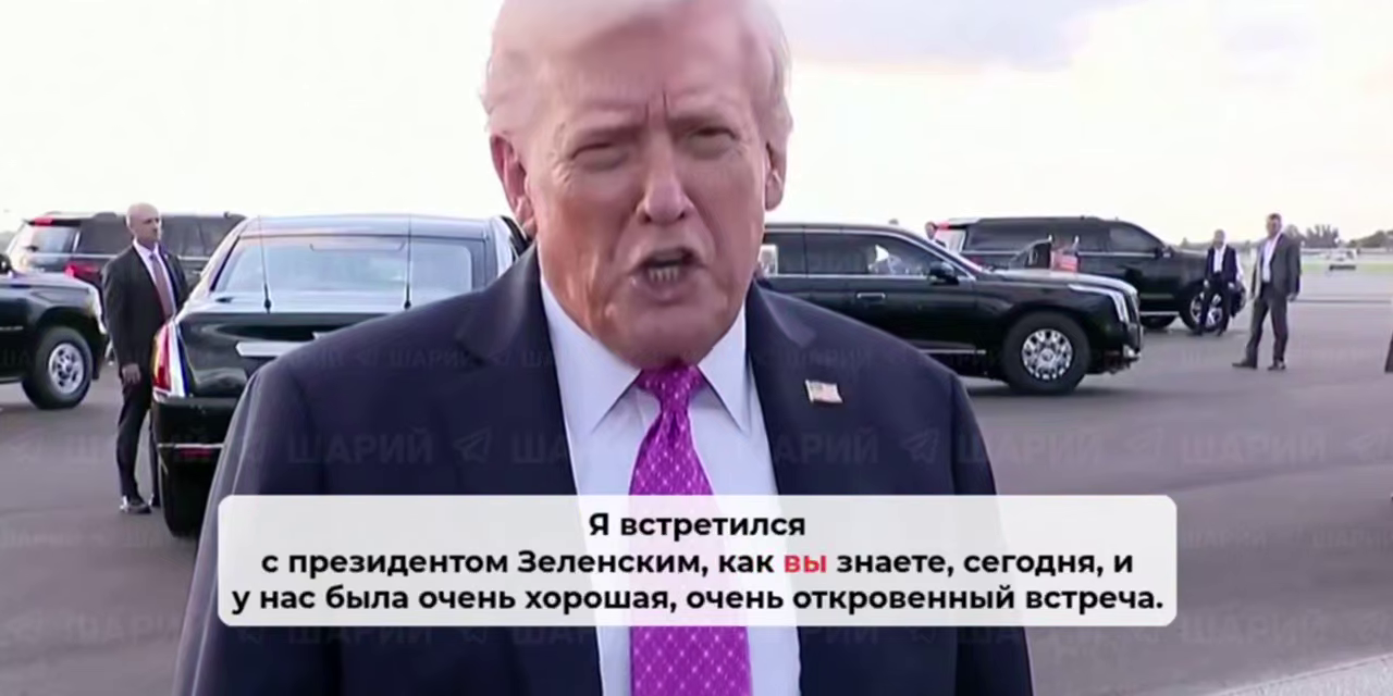 «Как вы знаете, сегодня я встречался с президентом Зеленским. У нас была очень хорошая встреча, на мой взгляд. Они должны немедленно прекратить войну по линии фронта, где бы она ни проходила, иначе все будет слишком сложно, и решения не найти.