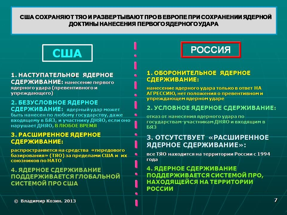 Имея принятый в 2020-ом доктринальный документ «Мгновенного глобального удара». Не оборонительного характера. А краткосрочного проведения военных действий глобального масштаба с применением ядерных и высокоточных обычных средств поражения. Космических, информационных и специальных операций в интересах уничтожения наиболее важных объектов противника ради завоевания стратегического превосходства.