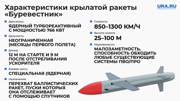 Леонид Исаакович прав, хотя вопрос многогранный и мало изученный. Пока. Потребуется время на посмотреть, сколько «Буревестников» будет развёрнуто вообще, а после начинать прикидывать сценарии возможного боевого применения. Но «оружием Судного Дня» изделие не станет, лично пересмотрел свою прежнюю точку зрения о появлении обновлённой «Мёртвой Руки» российской теперь выделки. Думается, дамы и джентльмены ... запуск даже одного «Буревестника» и пропажа оного с радаров где-нибудь в арктических пустошах или северных высочайших широтах является крайне убедительной «переговорной позицией» в минуту кризиса.