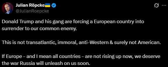 “Дональд Трамп и его банда принуждают европейскую страну капитулировать перед нашим общим врагом.
