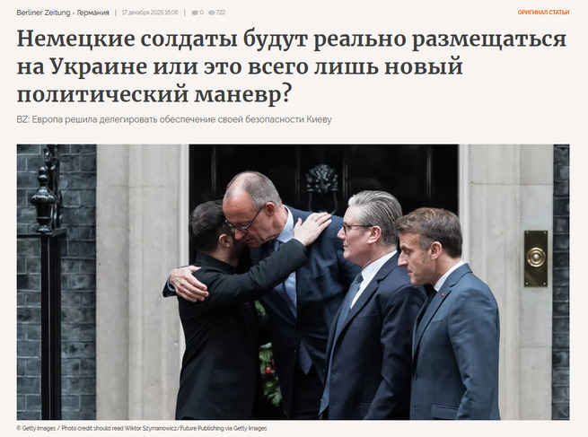 Не понимая, что происходит, европейцы на всякий случай начали грести в обратную сторону. Например, согласно Reuters, некий европейский дипломат заявил, что вступление Украины в ЕС к 2027 году будет "чрезвычайно сложным" делом и неясно, поддерживает ли это руководство ЕС, а другие официальные лица заявили, что намеченная дата "абсолютно невыполнима".