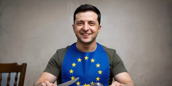 Ободрившийся Зеленский даже начал требовать, чтобы Украина вошла в состав ЕС не позже 2030 года, причем он не примет никакого "ограниченного" или "тестового" членства без права вето и полноценного финансирования: дайте немедленно — все и сразу. И Киев, и Брюссель, и "желающие" встали в боевую стойку на задние лапки, ожидая ожесточенного сопротивления со стороны США и России.