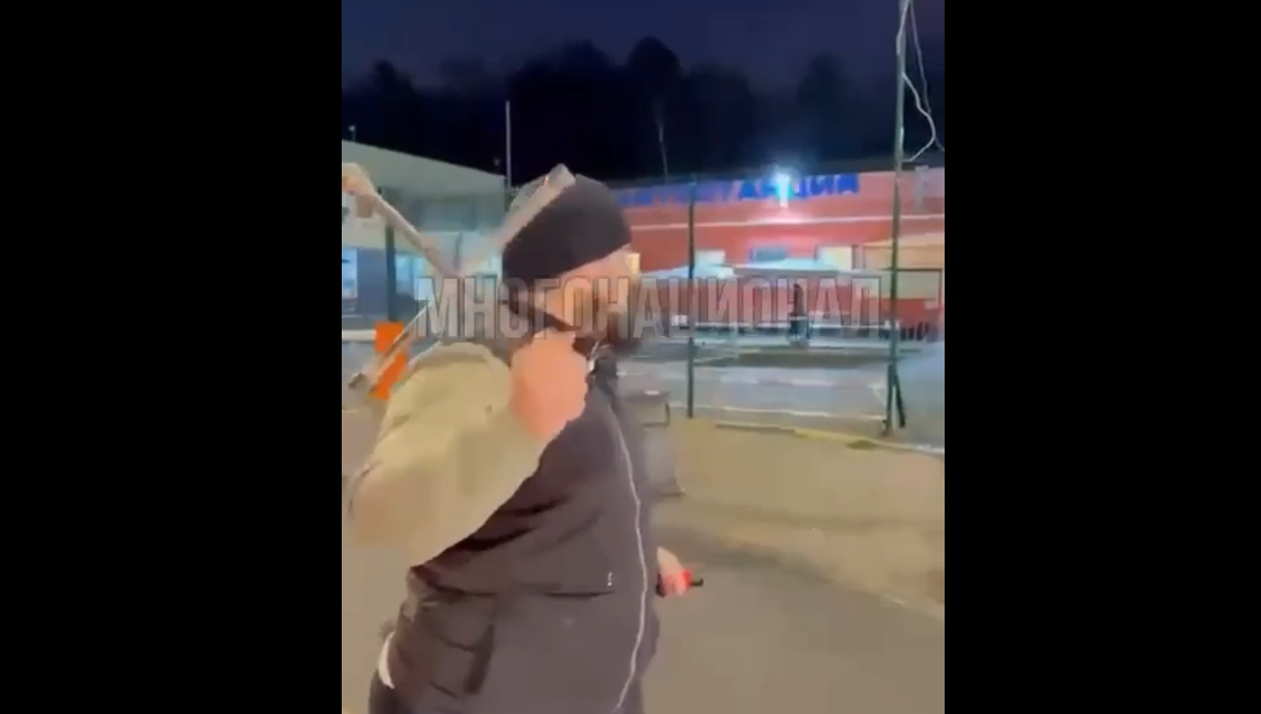 Таксист бросился на недовольных с баллонным ключом. Скрин виде в тг-канале @mnogonazi