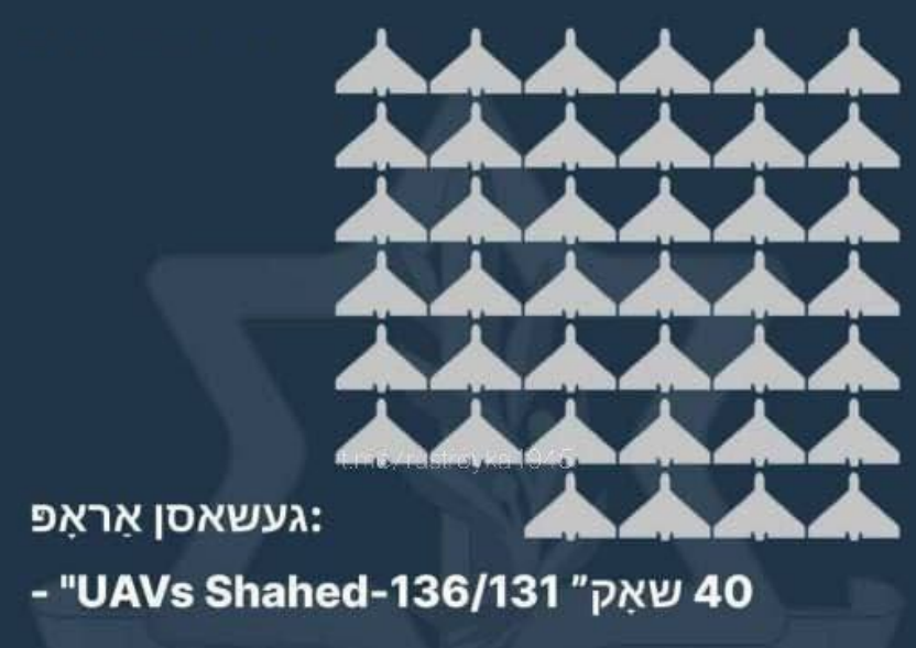 Армия Израиля сообщила, что почти все иранские ракеты и беспилотники были перехвачены и сбиты. Скрин.