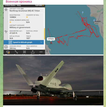 Накануне заявленной наземной операции США стягивают в регион технику. БПЛА стратегической радиолокационной и оптико-электронной разведки MQ-4C Triton приступил к детальному мониторингу острова Харк и расположенного в 30 км восточнее сектора материкового Ирана в Бушире. Напомним, что эти беспилотники уже успешно сбивал КСИР.