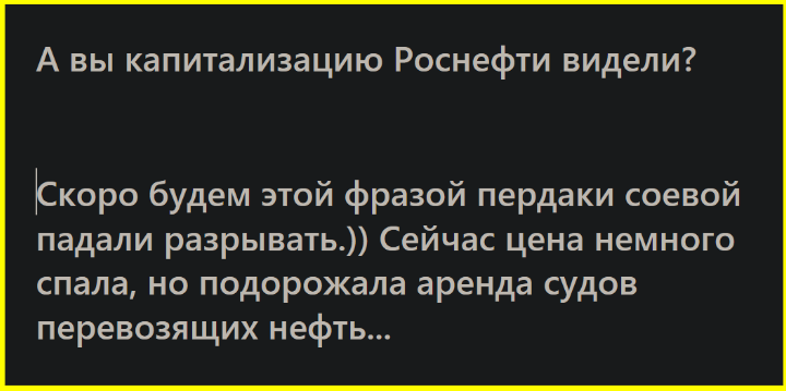 А вы капитализацию Роснефти видели?