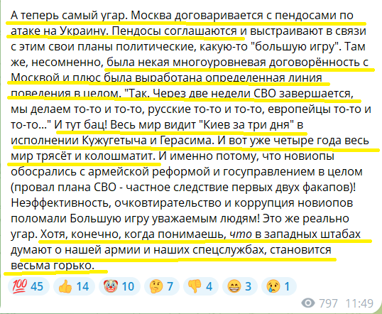 ==так-то в общем без разницы, сам ли он скатился в кретинизм такого уже трешевого уровня, ну или считает таковыми возможности своих читателей.. но это уж совсем непритязательно у него выходит, раньше хоть было интересно отмечать где и начиная откуда он ахинею понес.. а здесь какбе даже и фиг знает, такое впечатление, будто канал когда-то был тупо продан и его уже ведет вообще неподготовденный дятел
