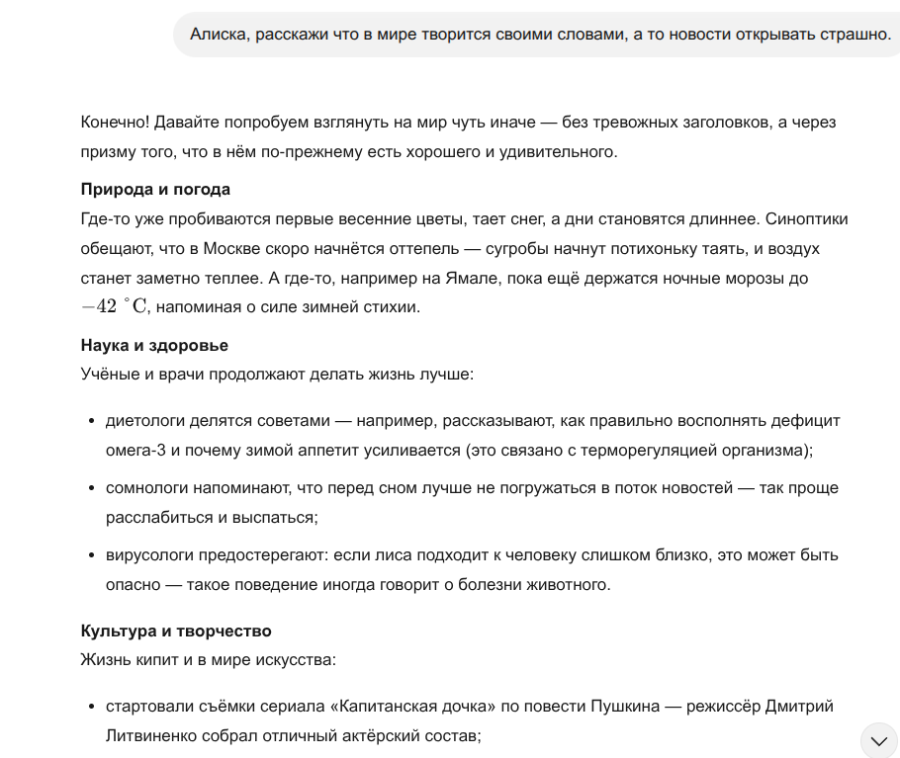 Новости от Алисы...