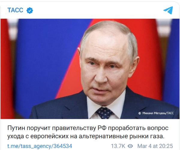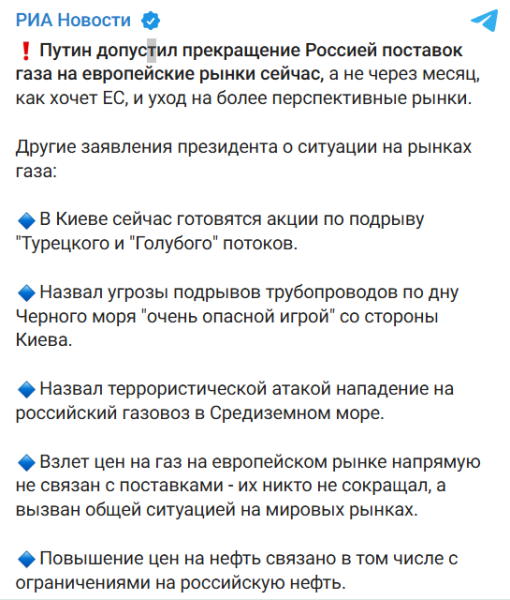 ==А вот и наши долгожданные, завуалированные санкции. Время максимально выгодное. ПХГ у европедиков пустые, на БВ 3,14здец и уже всем понятно, что на долго.