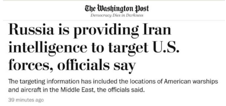 Россия предоставляет Ирану разведывательную информацию для ударов по американским войскам на Ближнем Востоке, сообщает Washington Post со ссылкой на американские источники.