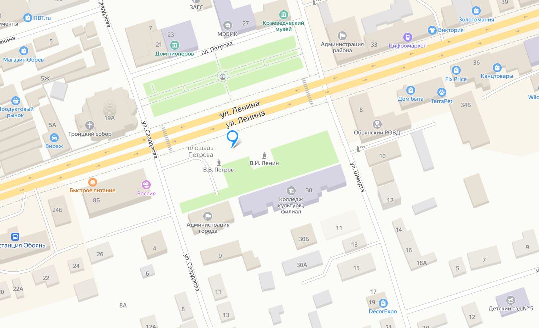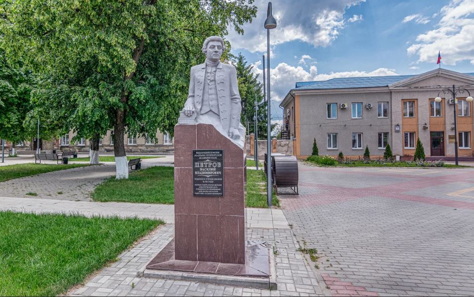 Центральная площадь города Обояни, родины В. В. Петрова, носит его имя.