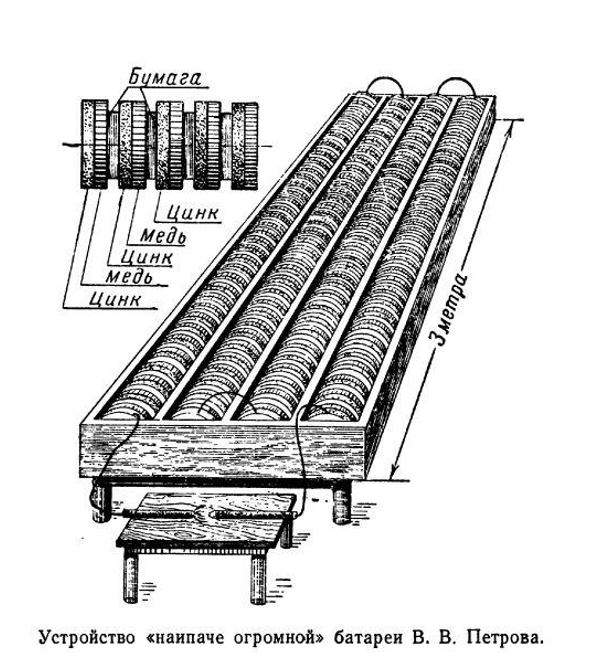Через год Петрову удалось собрать собственную конструкцию этого «столба» — «огромную наипаче батарею, состоявшую иногда из 4200 медных и цинковых кружков». Это был самый большой для своего времени электрический генератор, позволяющий вырабатывать энергию с напряжением до 1700 вольт.